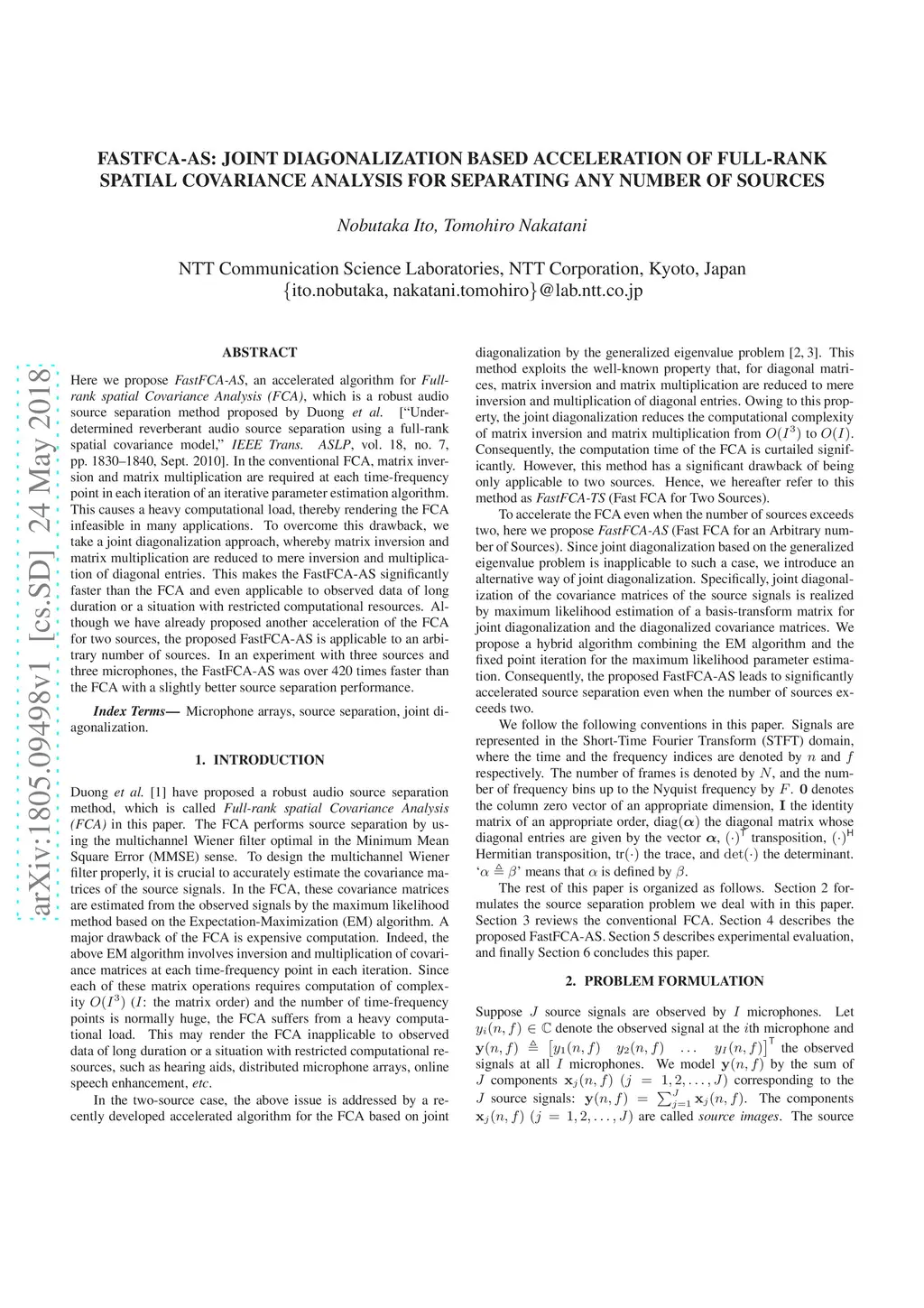Here we propose FastFCA-AS, an accelerated algorithm for Full-rank spatial Covariance Analysis (FCA), which is a robust audio source separation method proposed by Duong et al. ["Under-determined reverberant audio source separation using a full-rank spatial covariance model," IEEE Trans. ASLP, vol. 18, no. 7, pp. 1830-1840, Sept. 2010]. In the conventional FCA, matrix inversion and matrix multiplication are required at each time-frequency point in each iteration of an iterative parameter estimation algorithm. This causes a heavy computational load, thereby rendering the FCA infeasible in many applications. To overcome this drawback, we take a joint diagonalization approach, whereby matrix inversion and matrix multiplication are reduced to mere inversion and multiplication of diagonal entries. This makes the FastFCA-AS significantly faster than the FCA and even applicable to observed data of long duration or a situation with restricted computational resources. Although we have already proposed another acceleration of the FCA for two sources, the proposed FastFCA-AS is applicable to an arbitrary number of sources. In an experiment with three sources and three microphones, the FastFCA-AS was over 420 times faster than the FCA with a slightly better source separation performance.