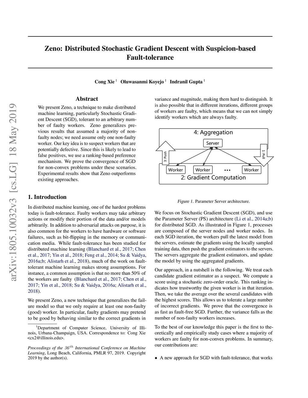 We present Zeno, a technique to make distributed machine learning, particularly Stochastic Gradient Descent (SGD), tolerant to an arbitrary number of faulty workers. Zeno generalizes previous results that assumed a majority of non-faulty nodes; we need assume only one non-faulty worker. Our key idea is to suspect workers that are potentially defective. Since this is likely to lead to false positives, we use a ranking-based preference mechanism. We prove the convergence of SGD for non-convex problems under these scenarios. Experimental results show that Zeno outperforms existing approaches.