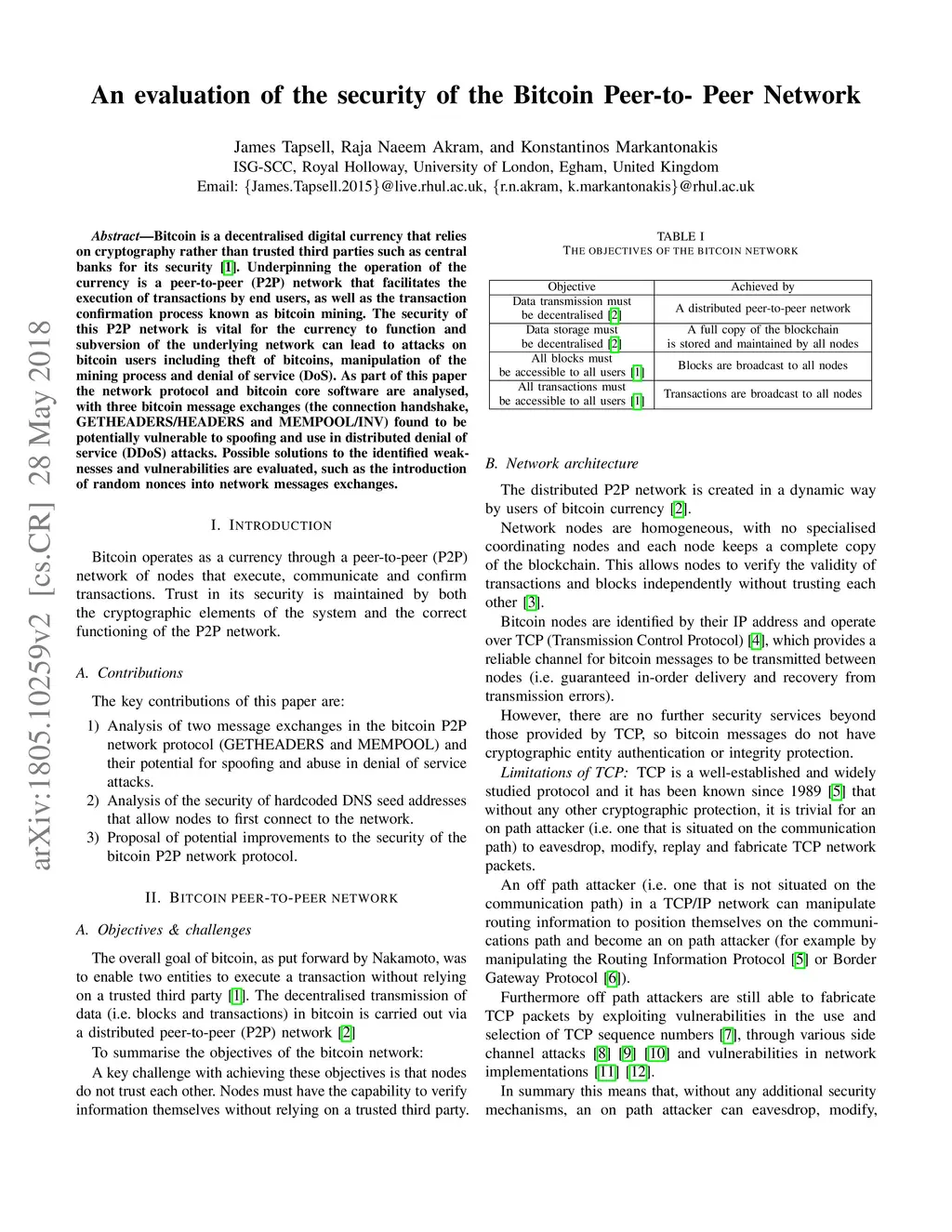 An evaluation of the security of the Bitcoin Peer-to- Peer Network