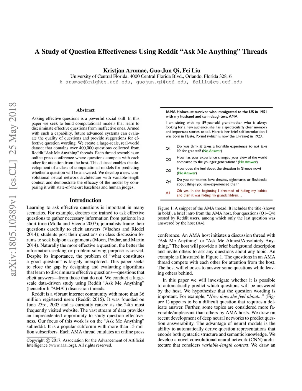 Asking effective questions is a powerful social skill. In this paper we seek to build computational models that learn to discriminate effective questions from ineffective ones. Armed with such a capability, future advanced systems can evaluate the quality of questions and provide suggestions for effective question wording. We create a large-scale, real-world dataset that contains over 400,000 questions collected from Reddit "Ask Me Anything" threads. Each thread resembles an online press conference where questions compete with each other for attention from the host. This dataset enables the development of a class of computational models for predicting whether a question will be answered. We develop a new convolutional neural network architecture with variable-length context and demonstrate the efficacy of the model by comparing it with state-of-the-art baselines and human judges.