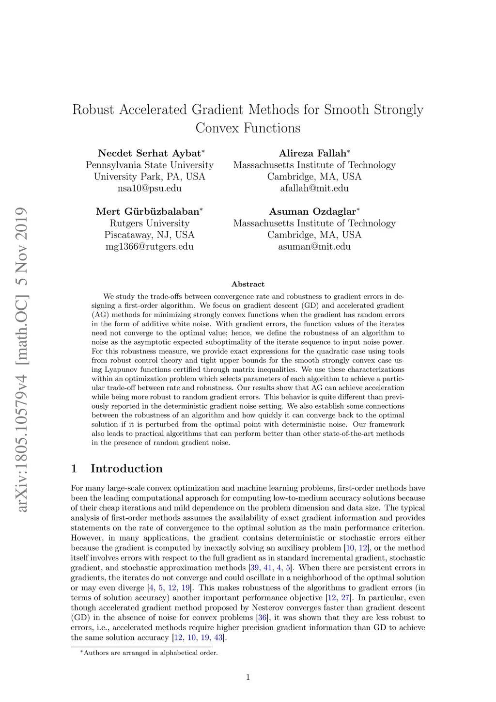 Robust Accelerated Gradient Methods for Smooth Strongly Convex Functions