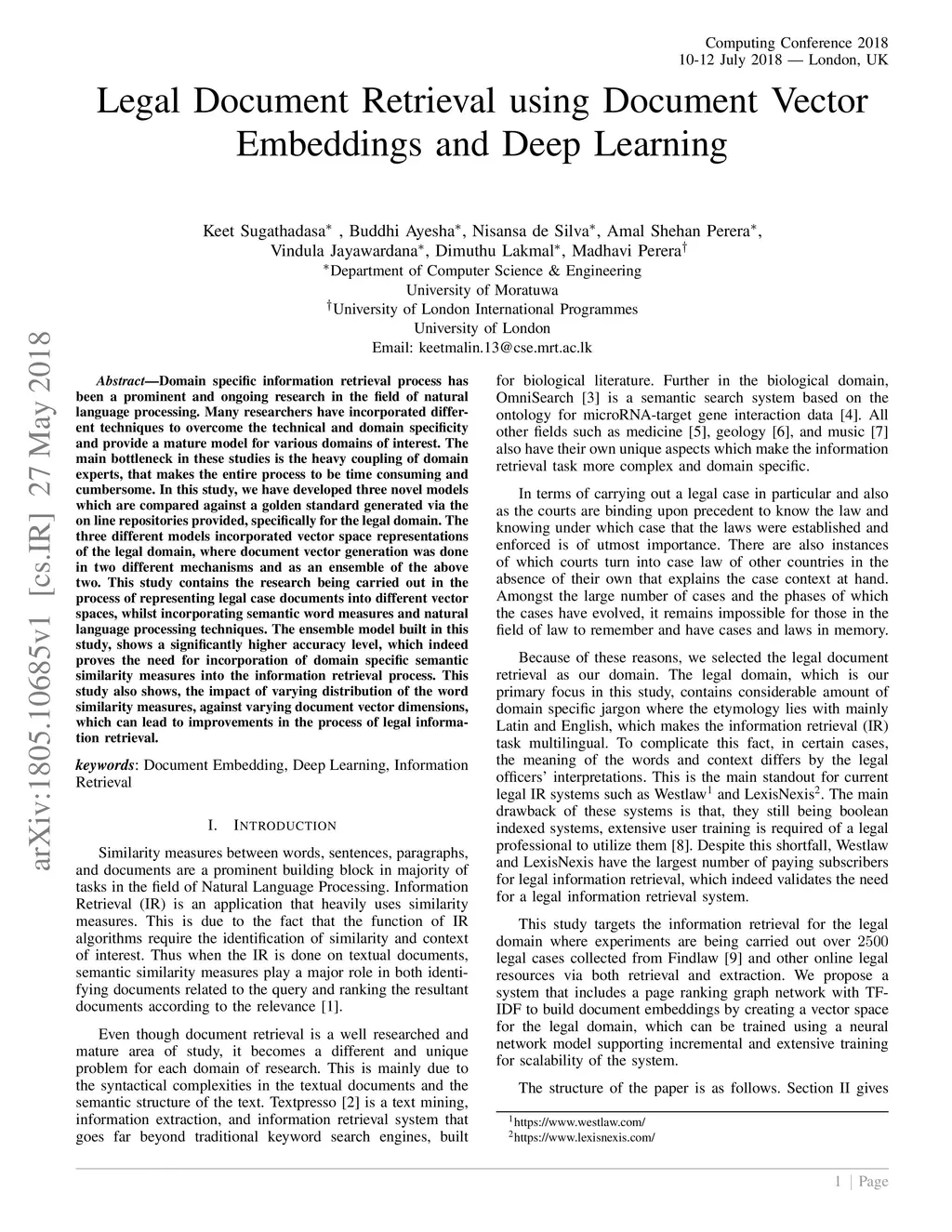 Legal Document Retrieval using Document Vector Embeddings and Deep