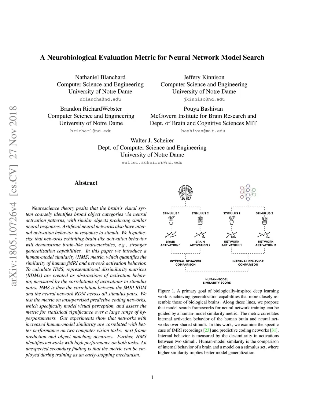 A Neurobiological Evaluation Metric for Neural Network Model Search