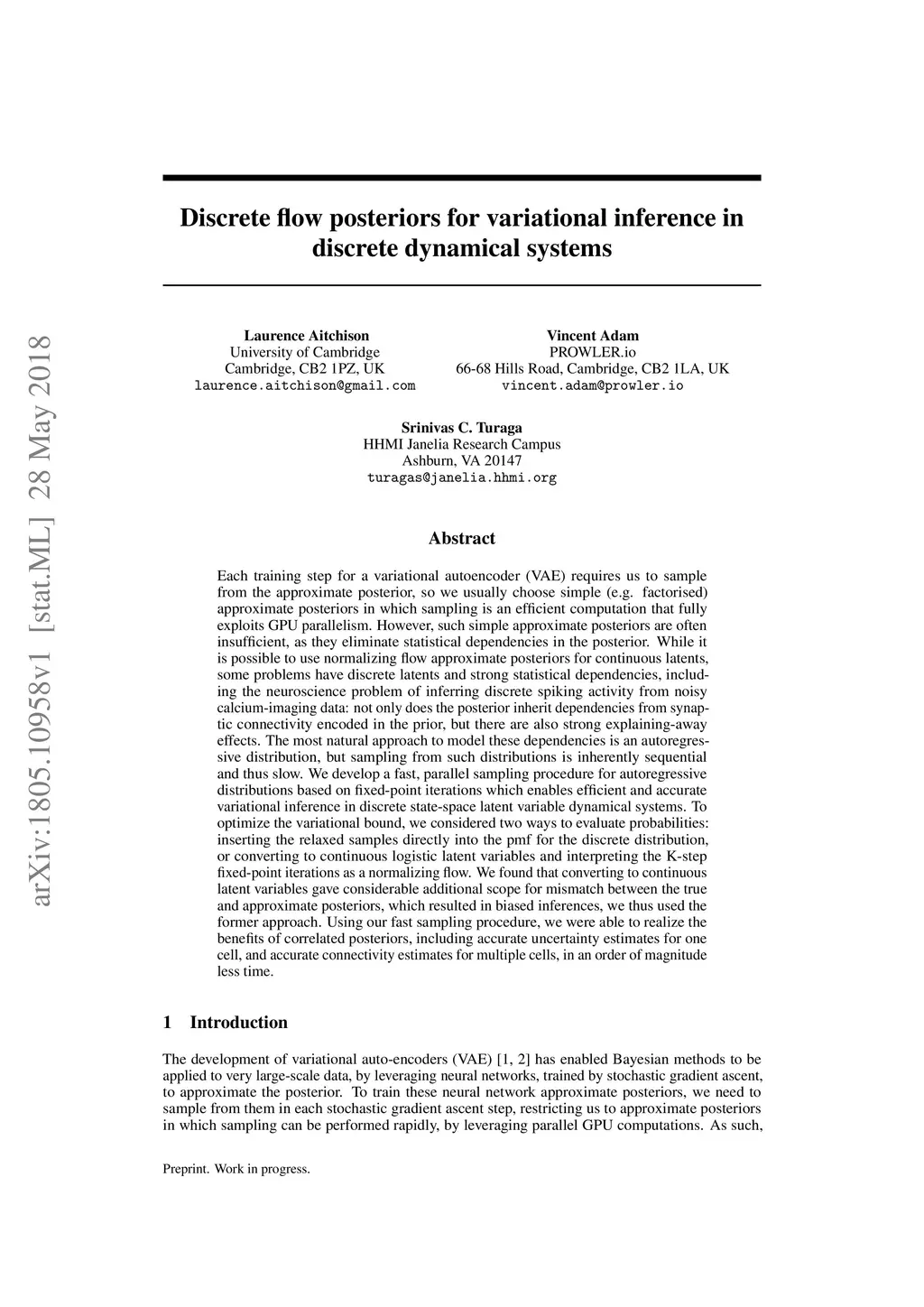 Each training step for a variational autoencoder (VAE) requires us to sample from the approximate posterior, so we usually choose simple (e.g. factorised) approximate posteriors in which sampling is an efficient computation that fully exploits GPU parallelism. However, such simple approximate posteriors are often insufficient, as they eliminate statistical dependencies in the posterior. While it is possible to use normalizing flow approximate posteriors for continuous latents, some problems have discrete latents and strong statistical dependencies. The most natural approach to model these dependencies is an autoregressive distribution, but sampling from such distributions is inherently sequential and thus slow. We develop a fast, parallel sampling procedure for autoregressive distributions based on fixed-point iterations which enables efficient and accurate variational inference in discrete state-space latent variable dynamical systems. To optimize the variational bound, we considered two ways to evaluate probabilities: inserting the relaxed samples directly into the pmf for the discrete distribution, or converting to continuous logistic latent variables and interpreting the K-step fixed-point iterations as a normalizing flow. We found that converting to continuous latent variables gave considerable additional scope for mismatch between the true and approximate posteriors, which resulted in biased inferences, we thus used the former approach. Using our fast sampling procedure, we were able to realize the benefits of correlated posteriors, including accurate uncertainty estimates for one cell, and accurate connectivity estimates for multiple cells, in an order of magnitude less time.