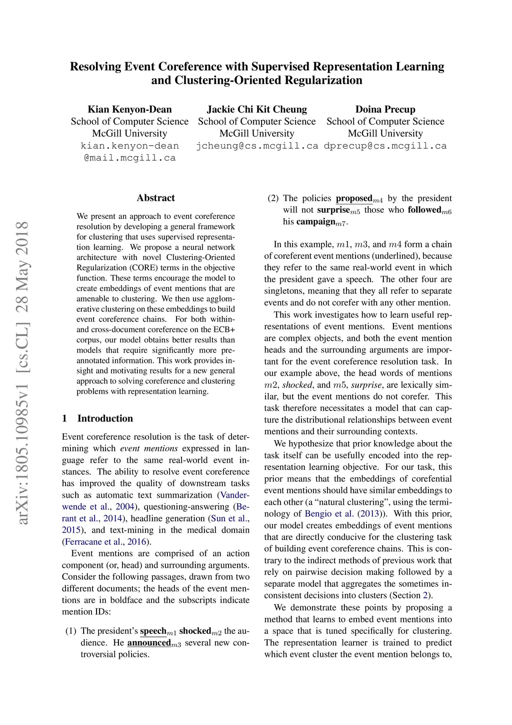 Resolving Event Coreference with Supervised Representation Learning and