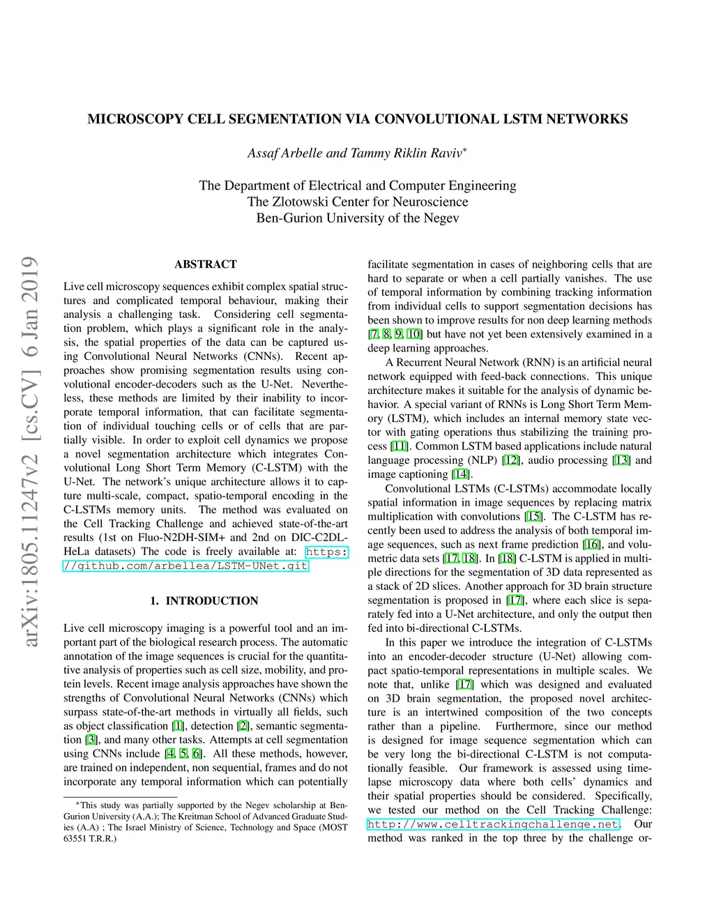 Microscopy Cell Segmentation via Convolutional LSTM Networks
