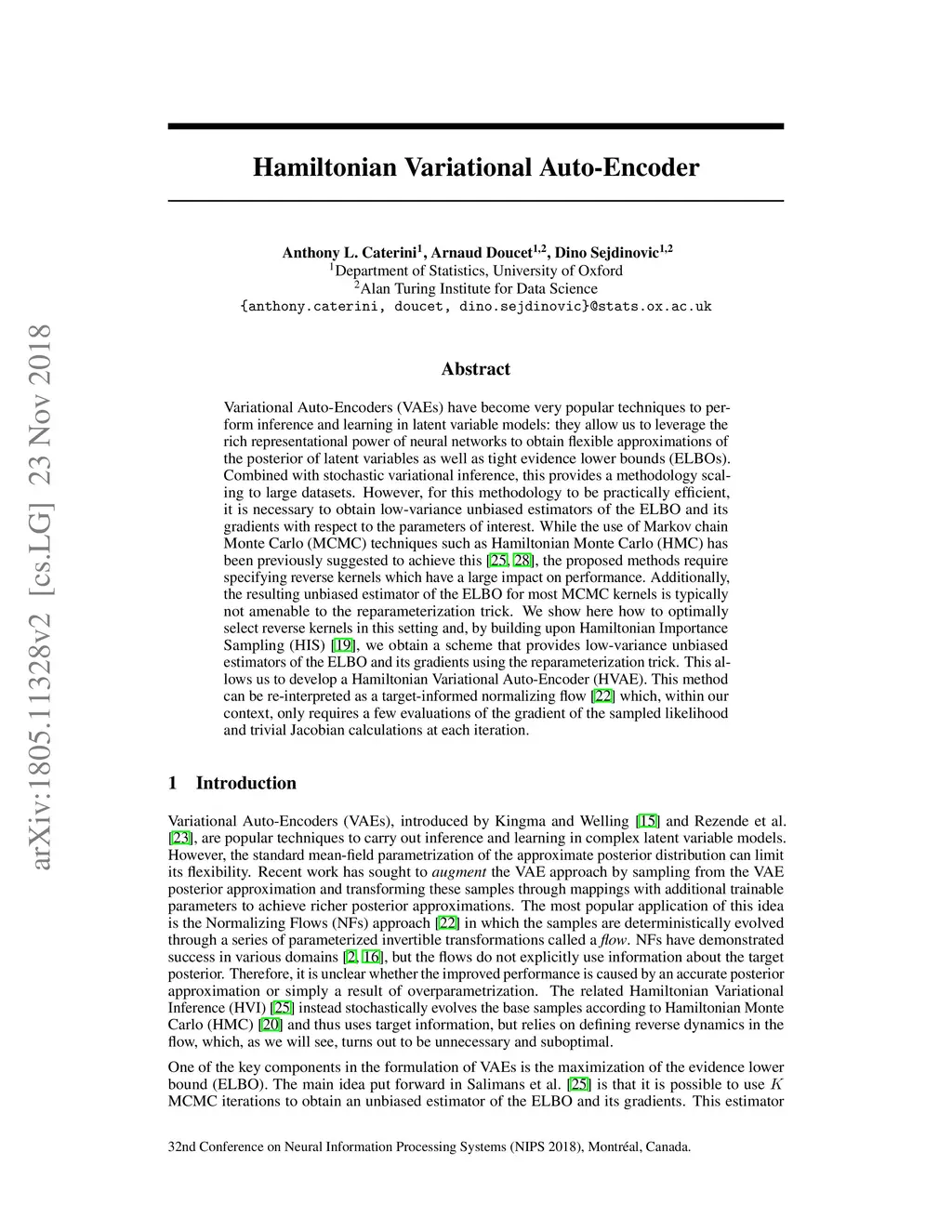 Hamiltonian Variational Auto-Encoder