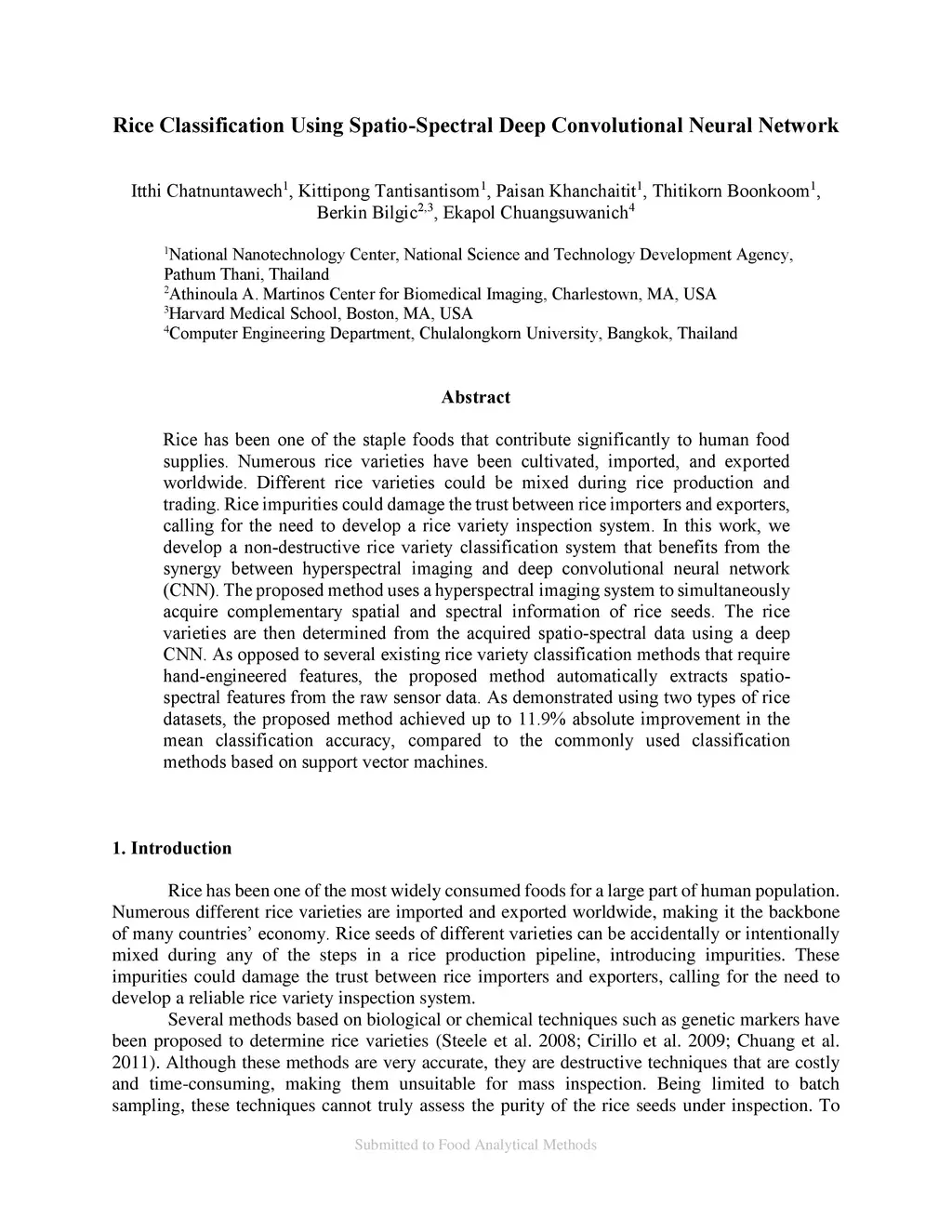 Rice Classification Using Spatio-Spectral Deep Convolutional Neural