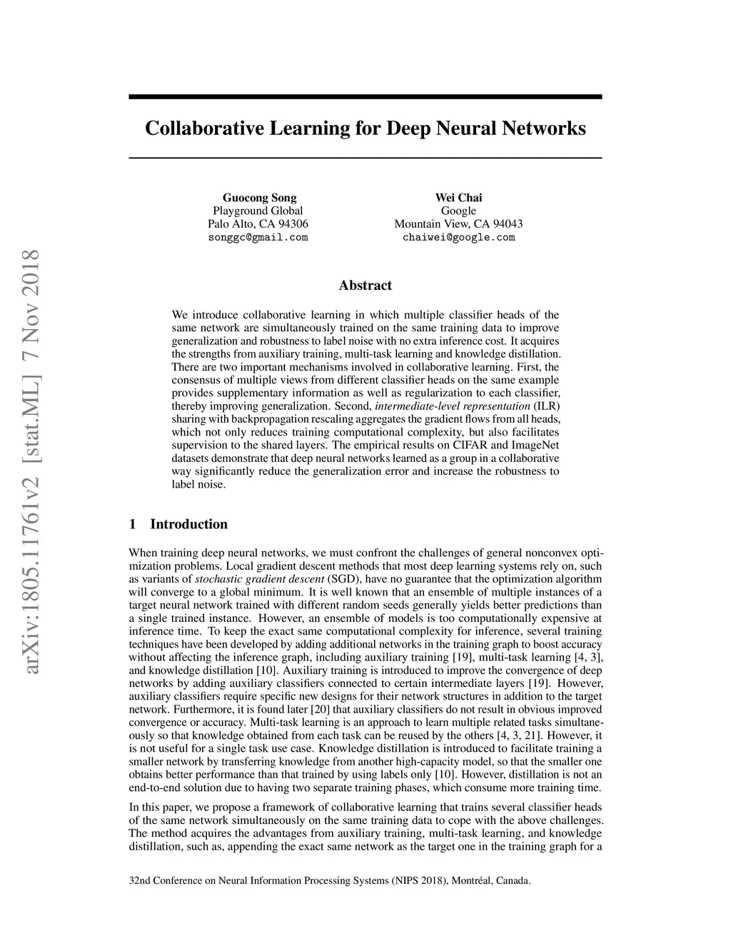 Collaborative Learning for Deep Neural Networks