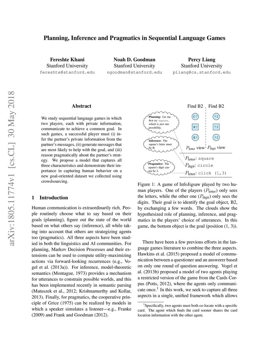 We study sequential language games in which two players, each with private information, communicate to achieve a common goal. In such games, a successful player must (i) infer the partner's private information from the partner's messages, (ii) generate messages that are most likely to help with the goal, and (iii) reason pragmatically about the partner's strategy. We propose a model that captures all three characteristics and demonstrate their importance in capturing human behavior on a new goal-oriented dataset we collected using crowdsourcing.