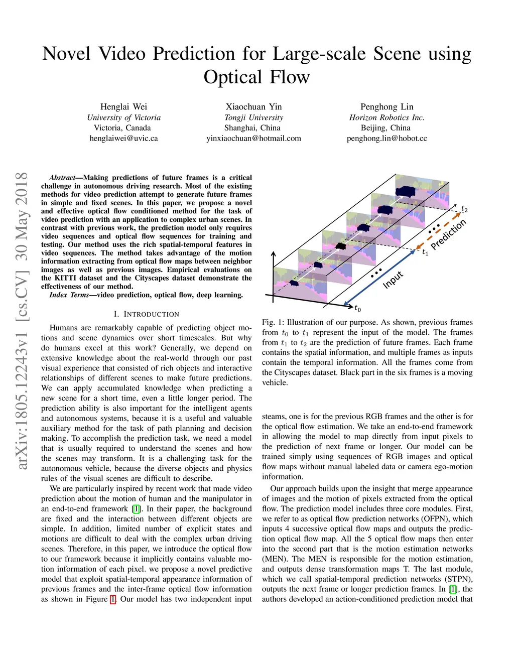 Novel Video Prediction for Large-scale Scene using Optical Flow
