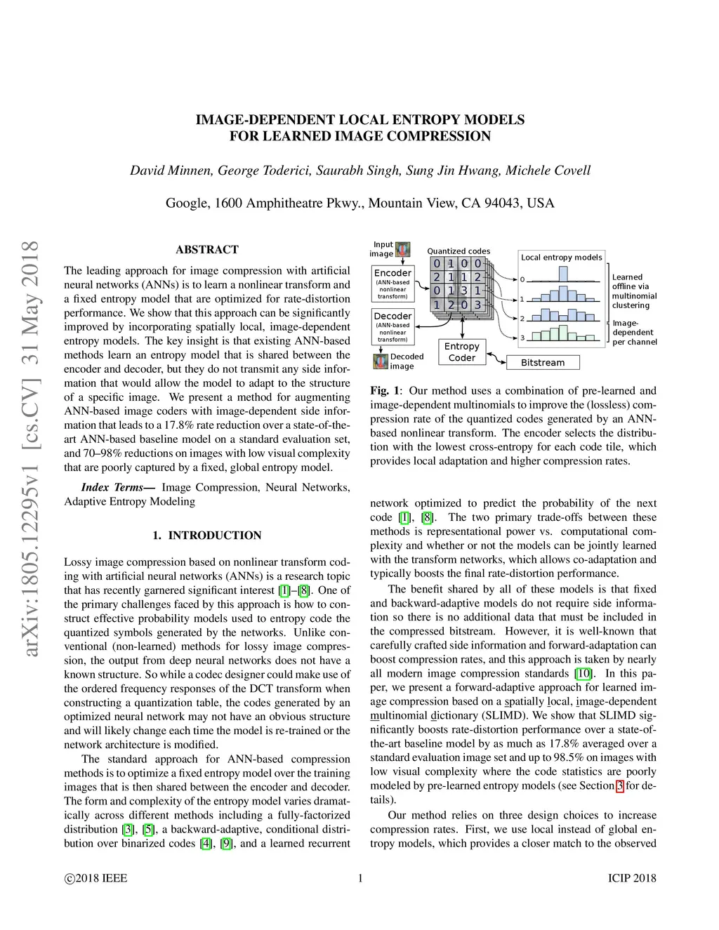 The leading approach for image compression with artificial neural networks (ANNs) is to learn a nonlinear transform and a fixed entropy model that are optimized for rate-distortion performance. We show that this approach can be significantly improved by incorporating spatially local, image-dependent entropy models. The key insight is that existing ANN-based methods learn an entropy model that is shared between the encoder and decoder, but they do not transmit any side information that would allow the model to adapt to the structure of a specific image. We present a method for augmenting ANN-based image coders with image-dependent side information that leads to a 17.8% rate reduction over a state-of-the-art ANN-based baseline model on a standard evaluation set, and 70-98% reductions on images with low visual complexity that are poorly captured by a fixed, global entropy model.