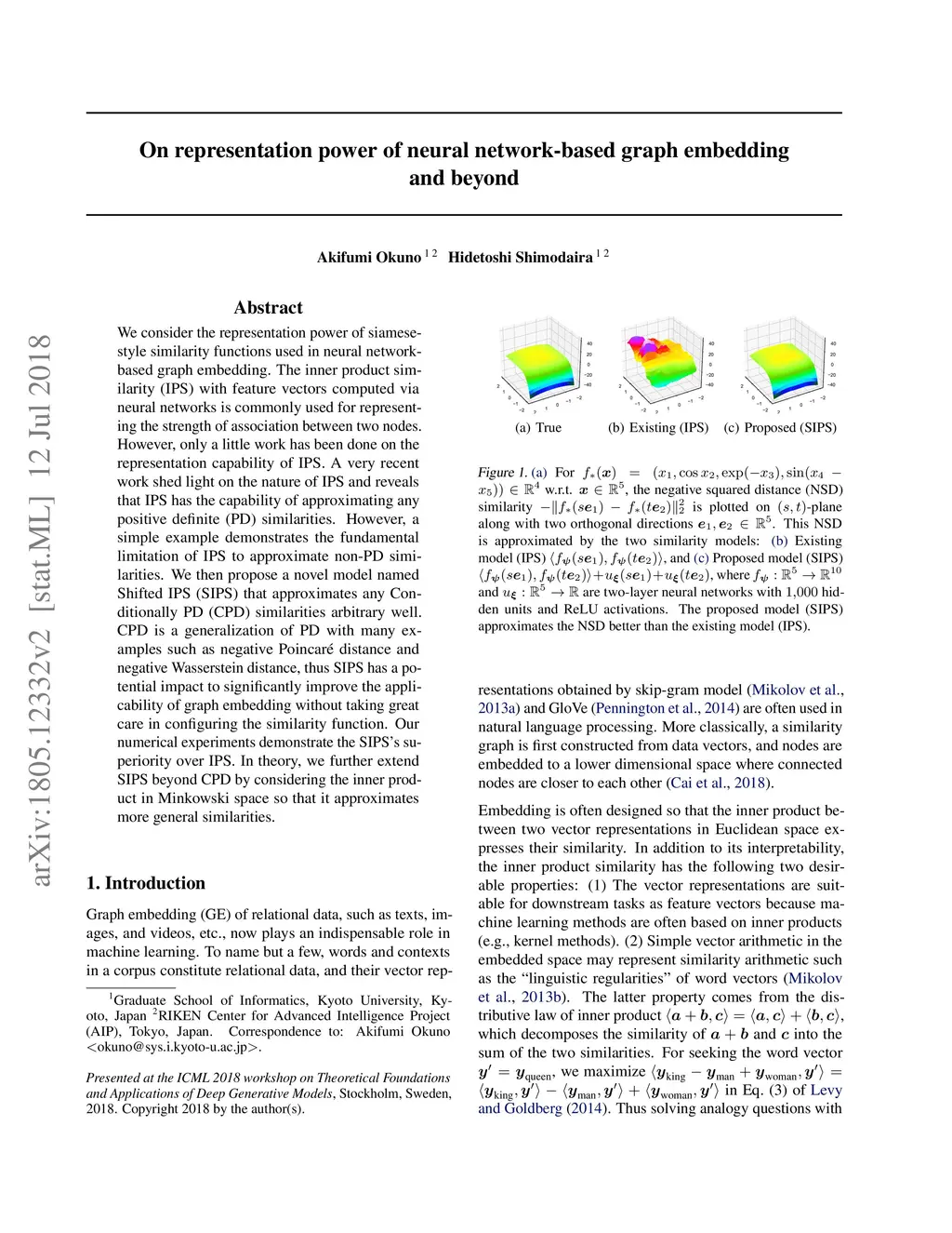 We consider the representation power of siamese-style similarity functions used in neural network-based graph embedding. The inner product similarity (IPS) with feature vectors computed via neural networks is commonly used for representing the strength of association between two nodes. However, only a little work has been done on the representation capability of IPS. A very recent work shed light on the nature of IPS and reveals that IPS has the capability of approximating any positive definite (PD) similarities. However, a simple example demonstrates the fundamental limitation of IPS to approximate non-PD similarities. We then propose a novel model named Shifted IPS (SIPS) that approximates any Conditionally PD (CPD) similarities arbitrary well. CPD is a generalization of PD with many examples such as negative Poincar\é distance and negative Wasserstein distance, thus SIPS has a potential impact to significantly improve the applicability of graph embedding without taking great care in configuring the similarity function. Our numerical experiments demonstrate the SIPS's superiority over IPS. In theory, we further extend SIPS beyond CPD by considering the inner product in Minkowski space so that it approximates more general similarities.