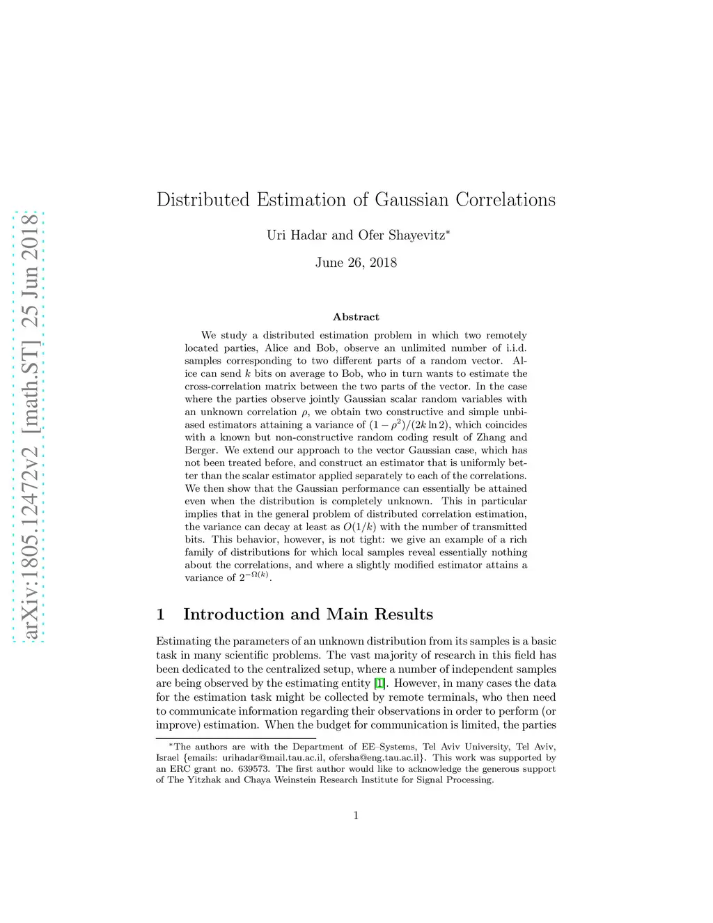 We study a distributed estimation problem in which two remotely located parties, Alice and Bob, observe an unlimited number of i.i.d. samples corresponding to two different parts of a random vector. Alice can send bits on average to Bob, who in turn wants to estimate the cross-correlation matrix between the two parts of the vector. In the case where the parties observe jointly Gaussian scalar random variables with an unknown correlation , we obtain two constructive and simple unbiased estimators attaining a variance of , which coincides with a known but non-constructive random coding result of Zhang and Berger. We extend our approach to the vector Gaussian case, which has not been treated before, and construct an estimator that is uniformly better than the scalar estimator applied separately to each of the correlations. We then show that the Gaussian performance can essentially be attained even when the distribution is completely unknown. This in particular implies that in the general problem of distributed correlation estimation, the variance can decay at least as with the number of transmitted bits. This behavior, however, is not tight: we give an example of a rich family of distributions for which local samples reveal essentially nothing about the correlations, and where a slightly modified estimator attains a variance of .