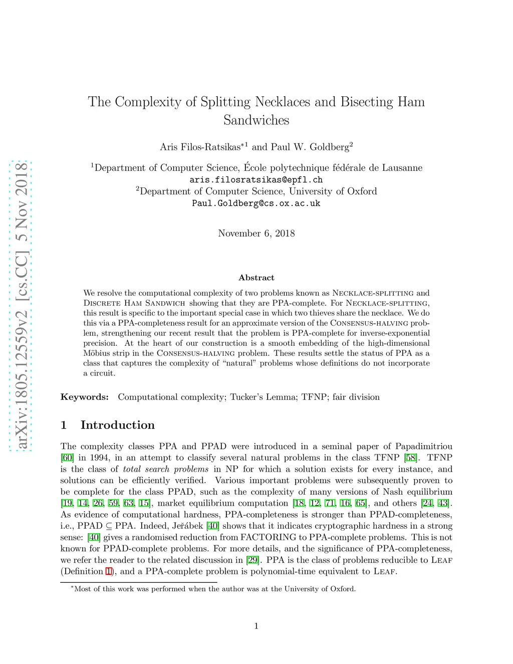 We resolve the computational complexity of two problems known as NECKLACE-SPLITTING and DISCRETE HAM SANDWICH, showing that they are PPA-complete. For NECKLACE SPLITTING, this result is specific to the important special case in which two thieves share the necklace. We do this via a PPA-completeness result for an approximate version of the CONSENSUS-HALVING problem, strengthening our recent result that the problem is PPA-complete for inverse-exponential precision. At the heart of our construction is a smooth embedding of the high-dimensional M\"obius strip in the CONSENSUS-HALVING problem. These results settle the status of PPA as a class that captures the complexity of "natural" problems whose definitions do not incorporate a circuit.