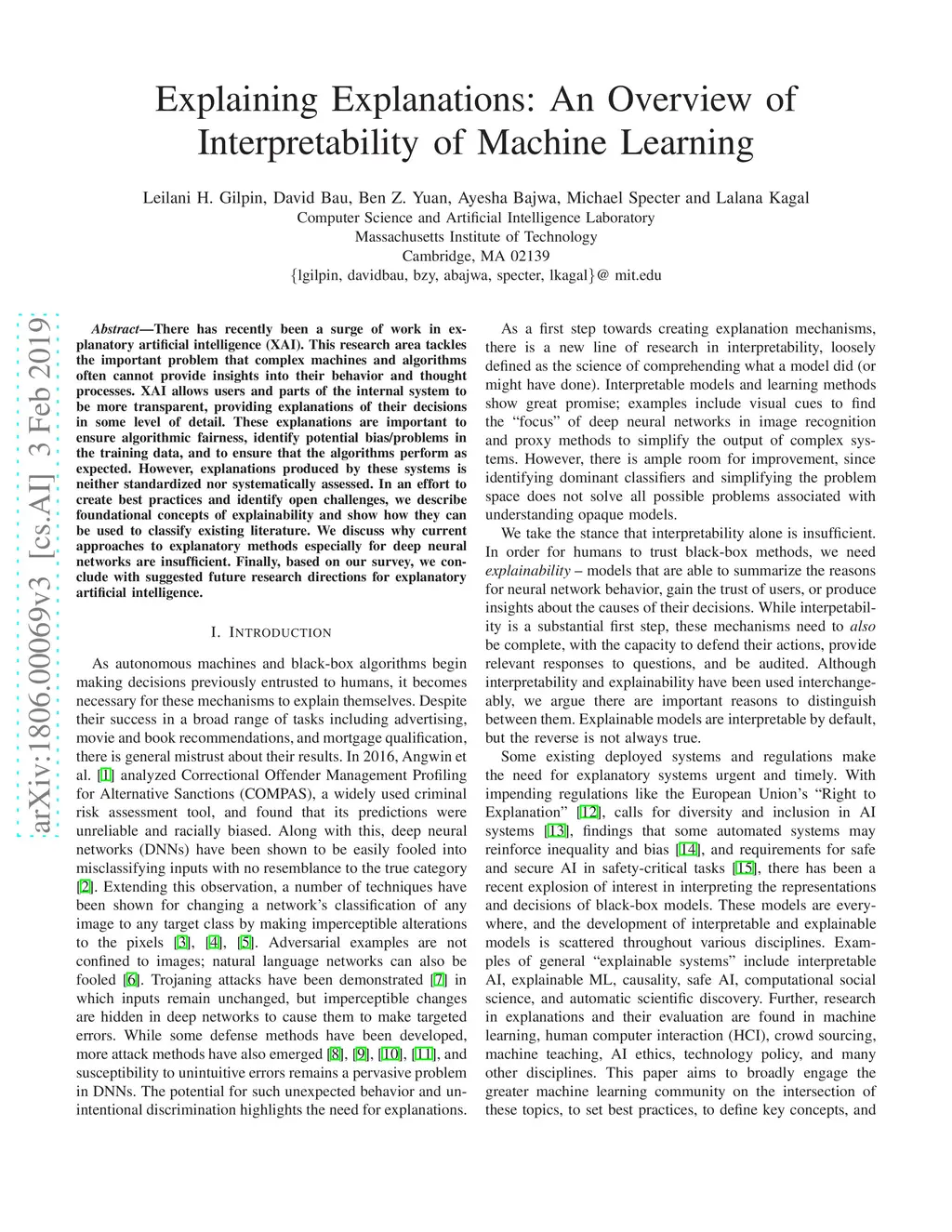 Explaining Explanations: An Overview of Interpretability of Machine