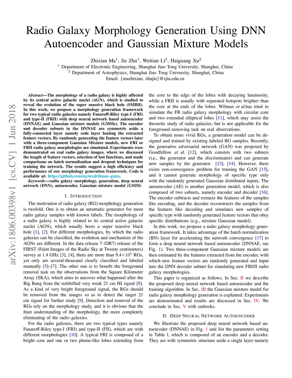 Radio Galaxy Morphology Generation Using DNN Autoencoder and Gaussian