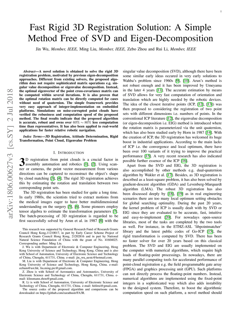 Fast Rigid 3D Registration Solution: A Simple Method Free of SVD and