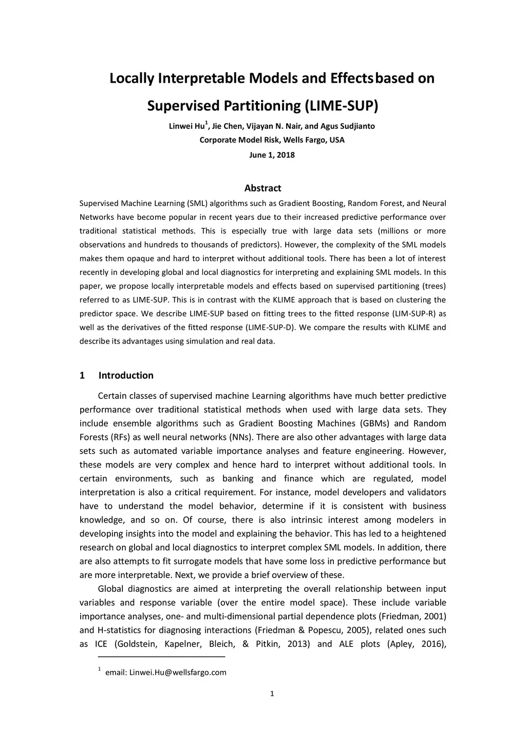 Supervised Machine Learning (SML) algorithms such as Gradient Boosting, Random Forest, and Neural Networks have become popular in recent years due to their increased predictive performance over traditional statistical methods. This is especially true with large data sets (millions or more observations and hundreds to thousands of predictors). However, the complexity of the SML models makes them opaque and hard to interpret without additional tools. There has been a lot of interest recently in developing global and local diagnostics for interpreting and explaining SML models. In this paper, we propose locally interpretable models and effects based on supervised partitioning (trees) referred to as LIME-SUP. This is in contrast with the KLIME approach that is based on clustering the predictor space. We describe LIME-SUP based on fitting trees to the fitted response (LIM-SUP-R) as well as the derivatives of the fitted response (LIME-SUP-D). We compare the results with KLIME and describe its advantages using simulation and real data.