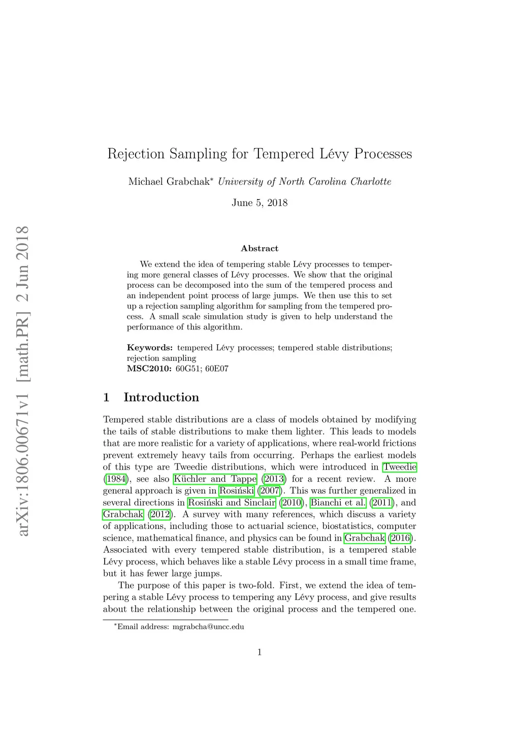 Rejection Sampling for Tempered Levy Processes