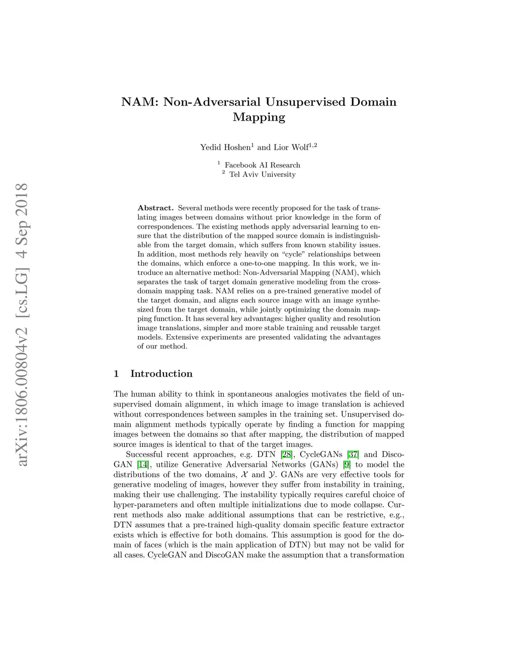 NAM: Non-Adversarial Unsupervised Domain Mapping