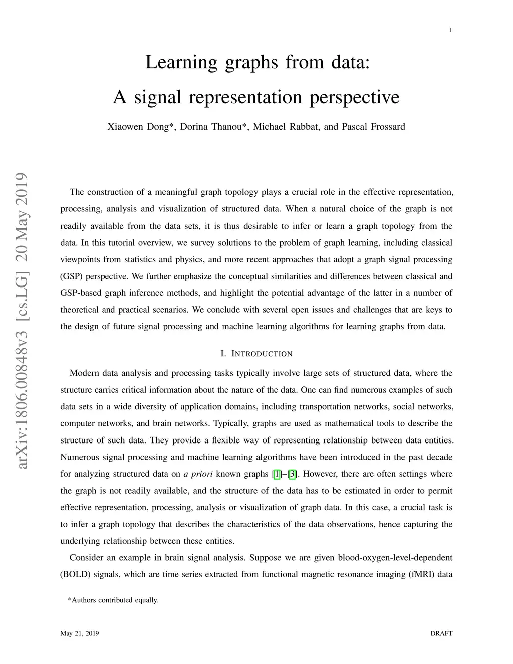 The construction of a meaningful graph topology plays a crucial role in the effective representation, processing, analysis and visualization of structured data. When a natural choice of the graph is not readily available from the data sets, it is thus desirable to infer or learn a graph topology from the data. In this tutorial overview, we survey solutions to the problem of graph learning, including classical viewpoints from statistics and physics, and more recent approaches that adopt a graph signal processing (GSP) perspective. We further emphasize the conceptual similarities and differences between classical and GSP-based graph inference methods, and highlight the potential advantage of the latter in a number of theoretical and practical scenarios. We conclude with several open issues and challenges that are keys to the design of future signal processing and machine learning algorithms for learning graphs from data.