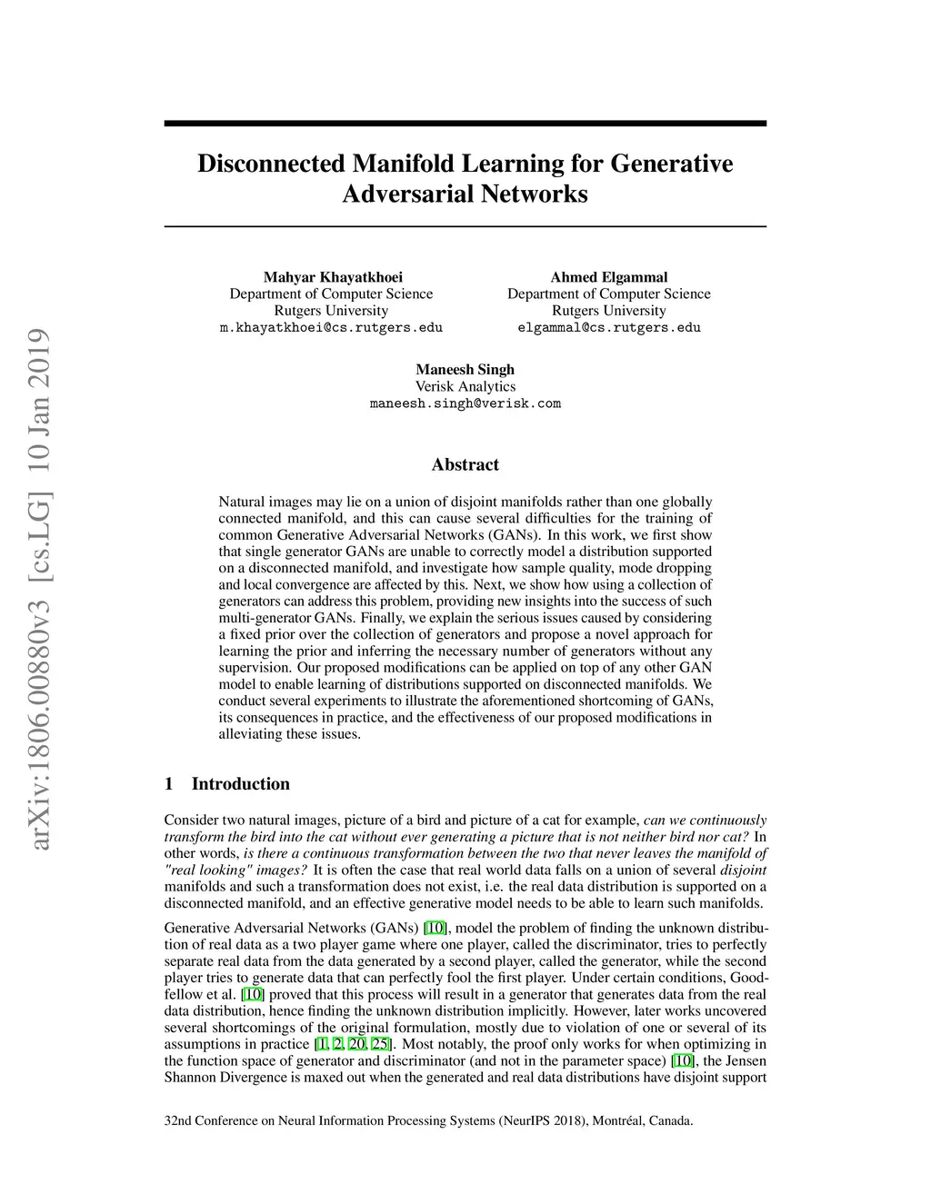 Disconnected Manifold Learning for Generative Adversarial Networks