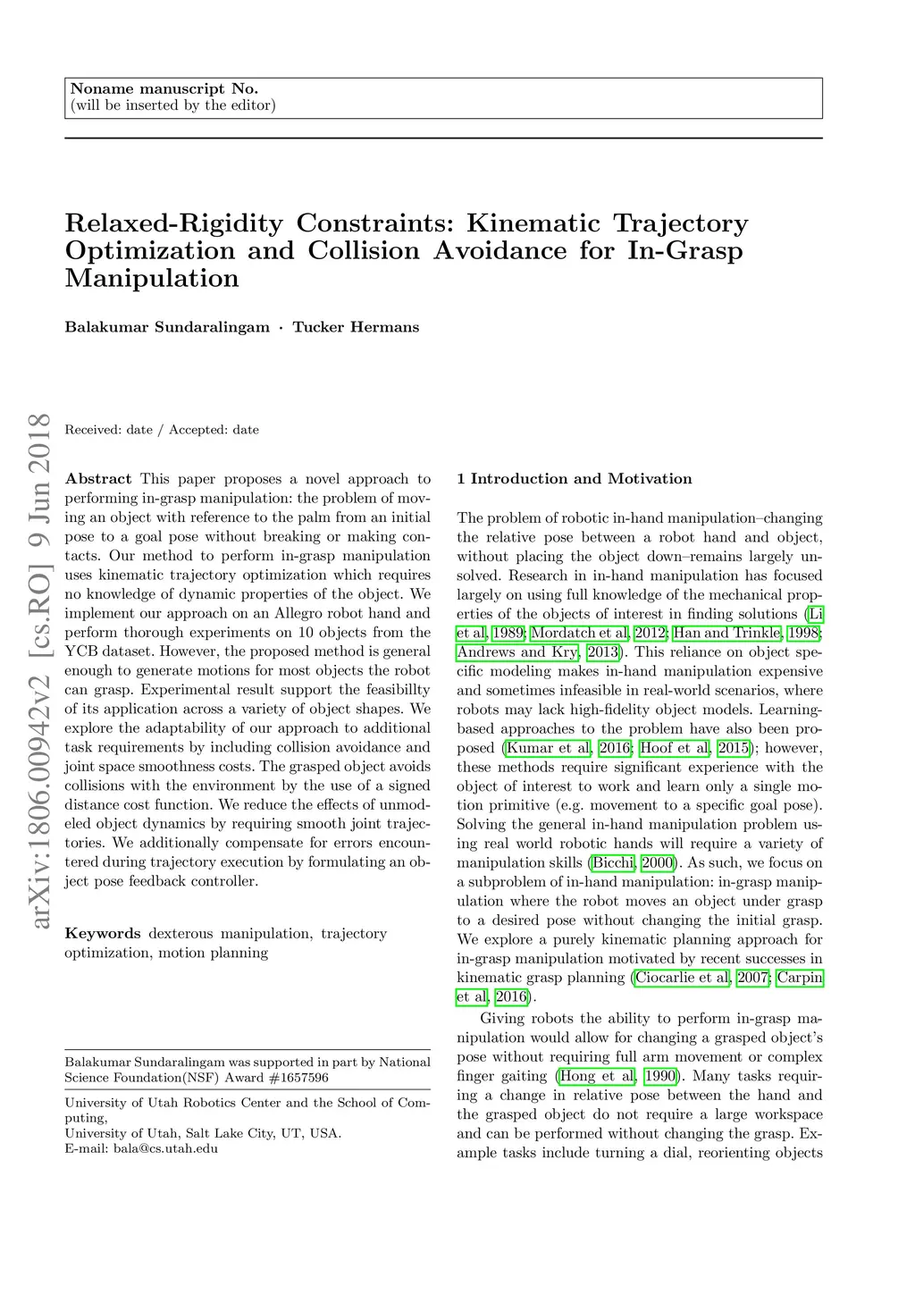 Collision Avoidance for In-Grasp Manipulation