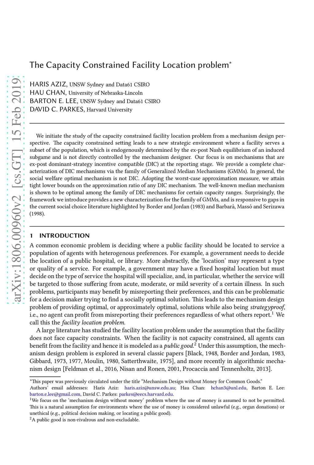 The Capacity Constrained Facility Location problem