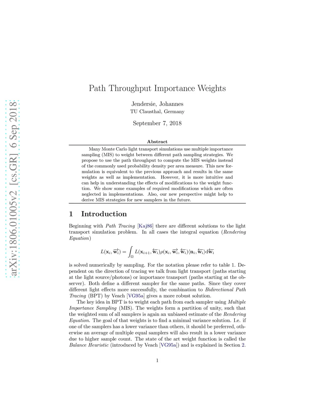Path Throughput Importance Weights