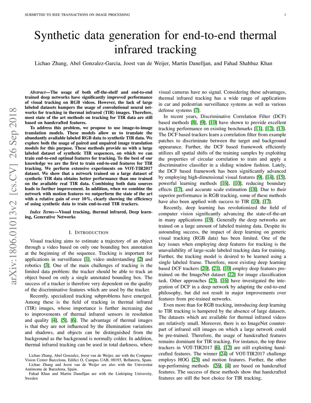 Synthetic data generation for end-to-end thermal infrared tracking