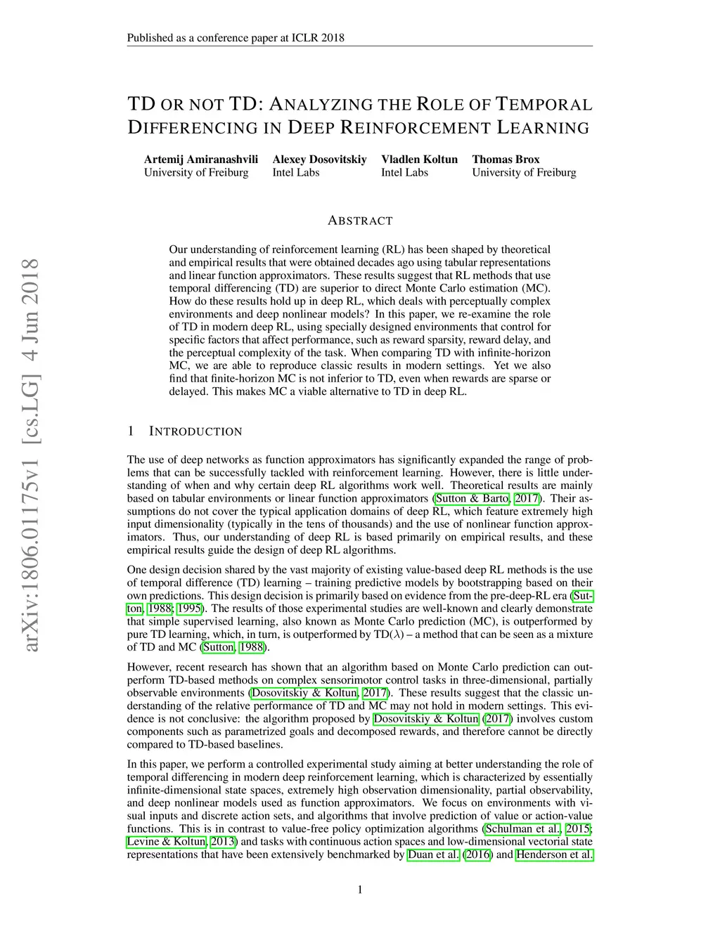 TD or not TD: Analyzing the Role of Temporal Differencing in Deep