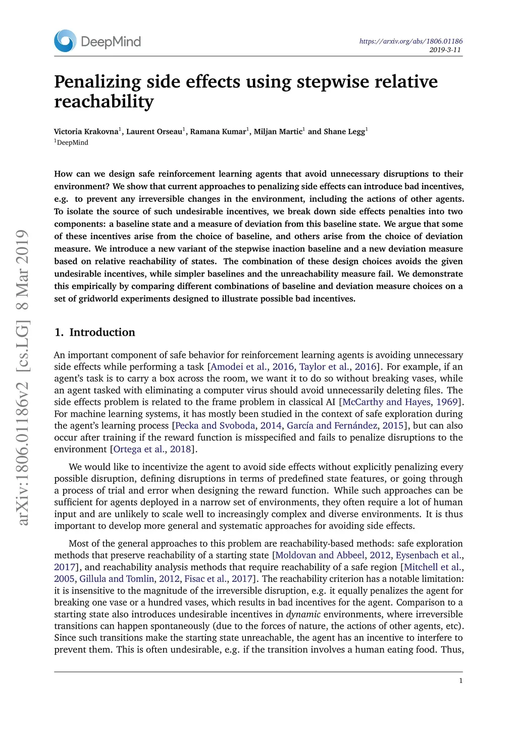 Penalizing side effects using stepwise relative reachability