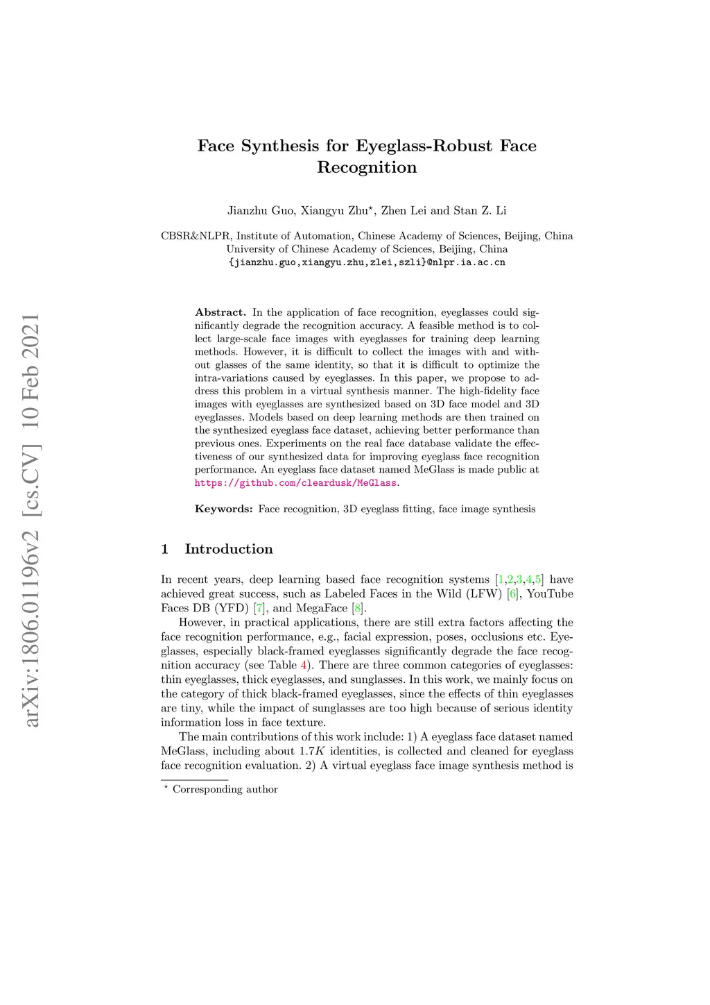 Face Synthesis for Eyeglass-Robust Face Recognition