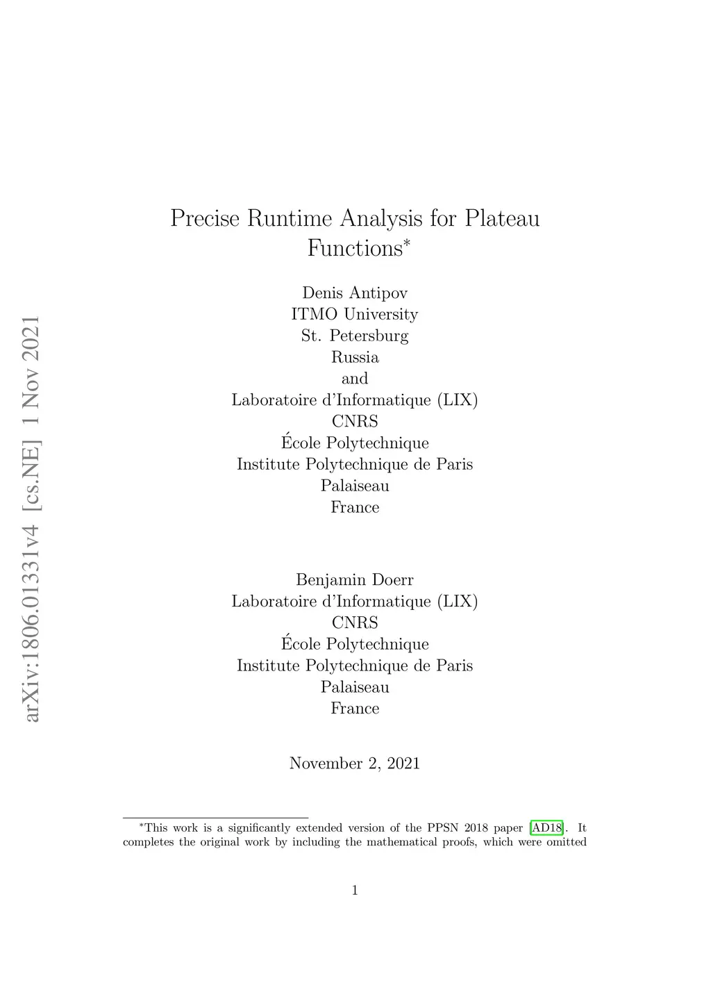 To gain a better theoretical understanding of how evolutionary algorithms (EAs) cope with plateaus of constant fitness, we propose the -dimensional Plateau function as natural benchmark and analyze how different variants of the EA optimize it. The Plateau function has a plateau of second-best fitness in a ball of radius around the optimum. As evolutionary algorithm, we regard the EA using an arbitrary unbiased mutation operator. Denoting by the random number of bits flipped in an application of this operator and assuming that has at least some small sub-constant value, we show the surprising result that for all constant , the runtime follows a distribution close to the geometric one with success probability equal to the probability to flip between and bits divided by the size of the plateau. Consequently, the expected runtime is the inverse of this number, and thus only depends on the probability to flip between and bits, but not on other characteristics of the mutation operator. Our result also implies that the optimal mutation rate for standard bit mutation here is approximately . Our main analysis tool is a combined analysis of the Markov chains on the search point space and on the Hamming level space, an approach that promises to be useful also for other plateau problems.