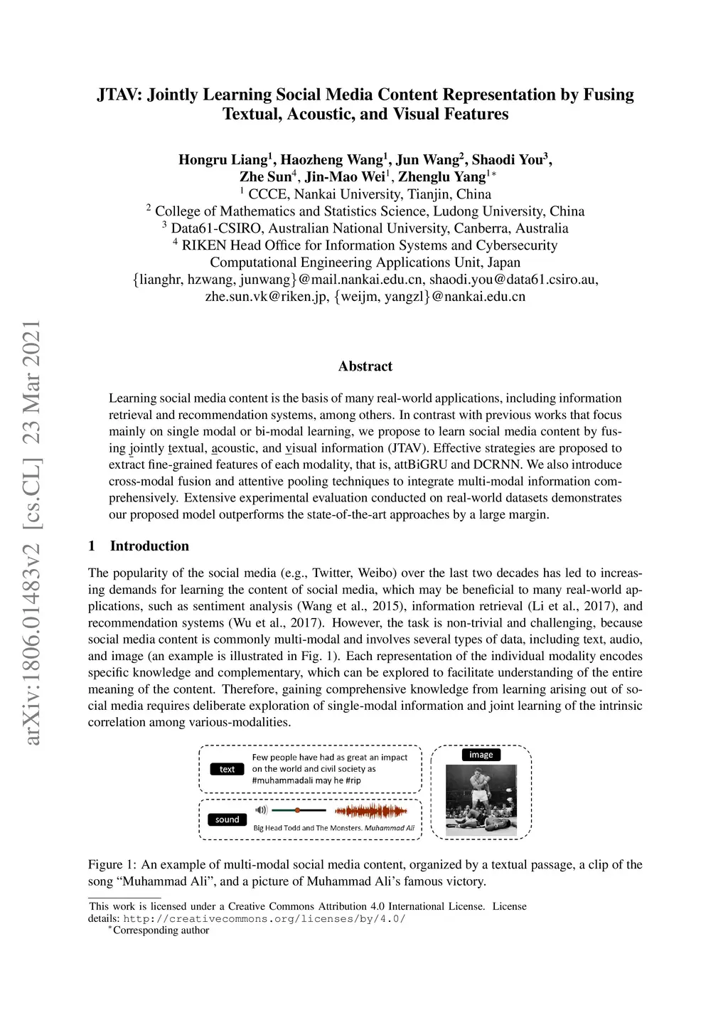 JTAV: Jointly Learning Social Media Content Representation by Fusing