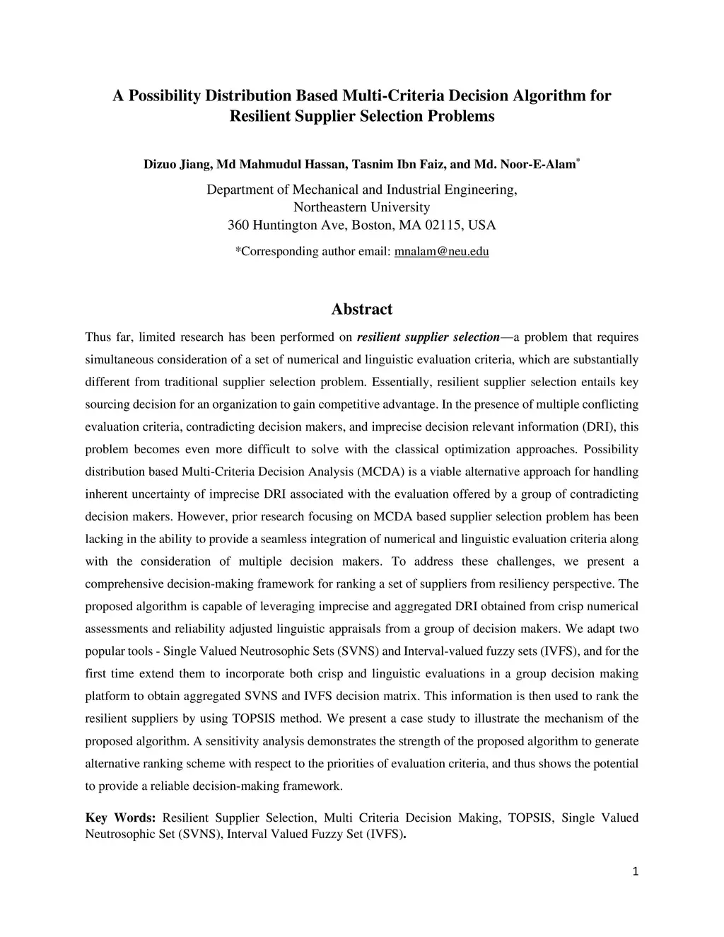 A Possibility Distribution Based Multi-Criteria Decision Algorithm for
