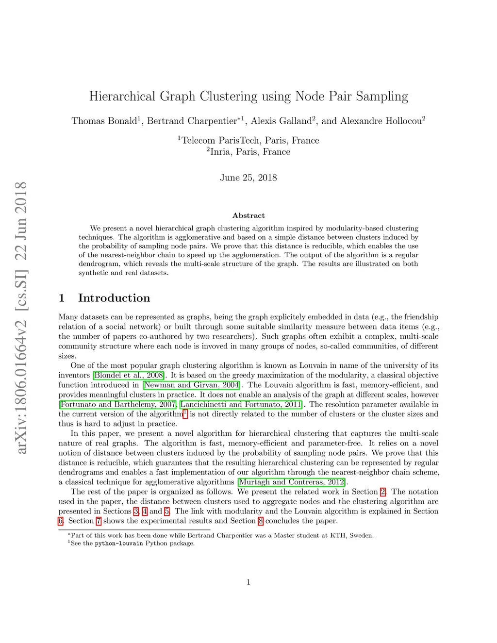 Hierarchical Graph Clustering using Node Pair Sampling