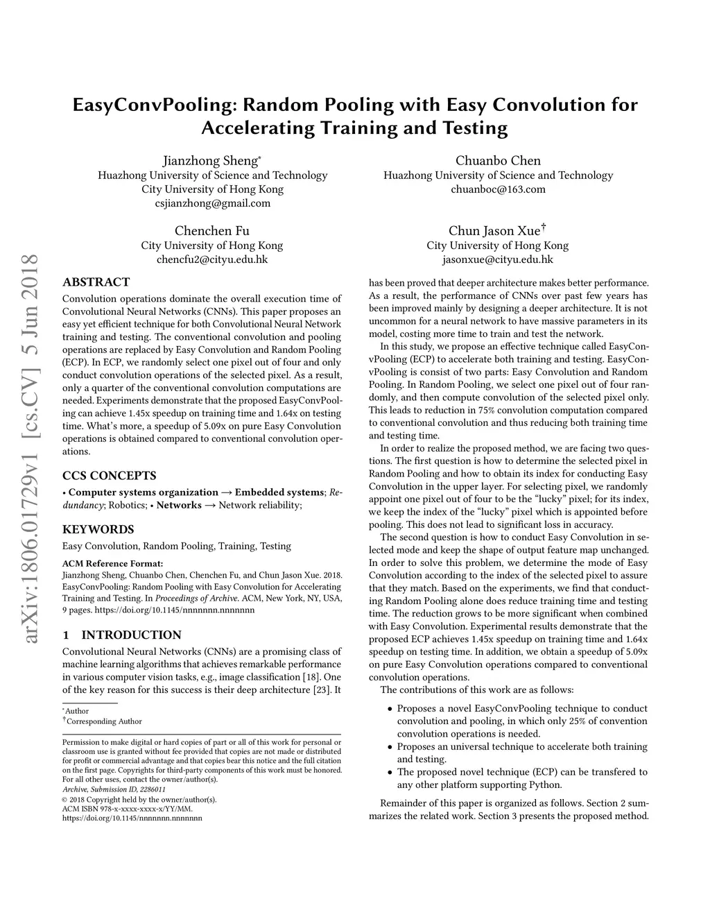 EasyConvPooling: Random Pooling with Easy Convolution for Accelerating