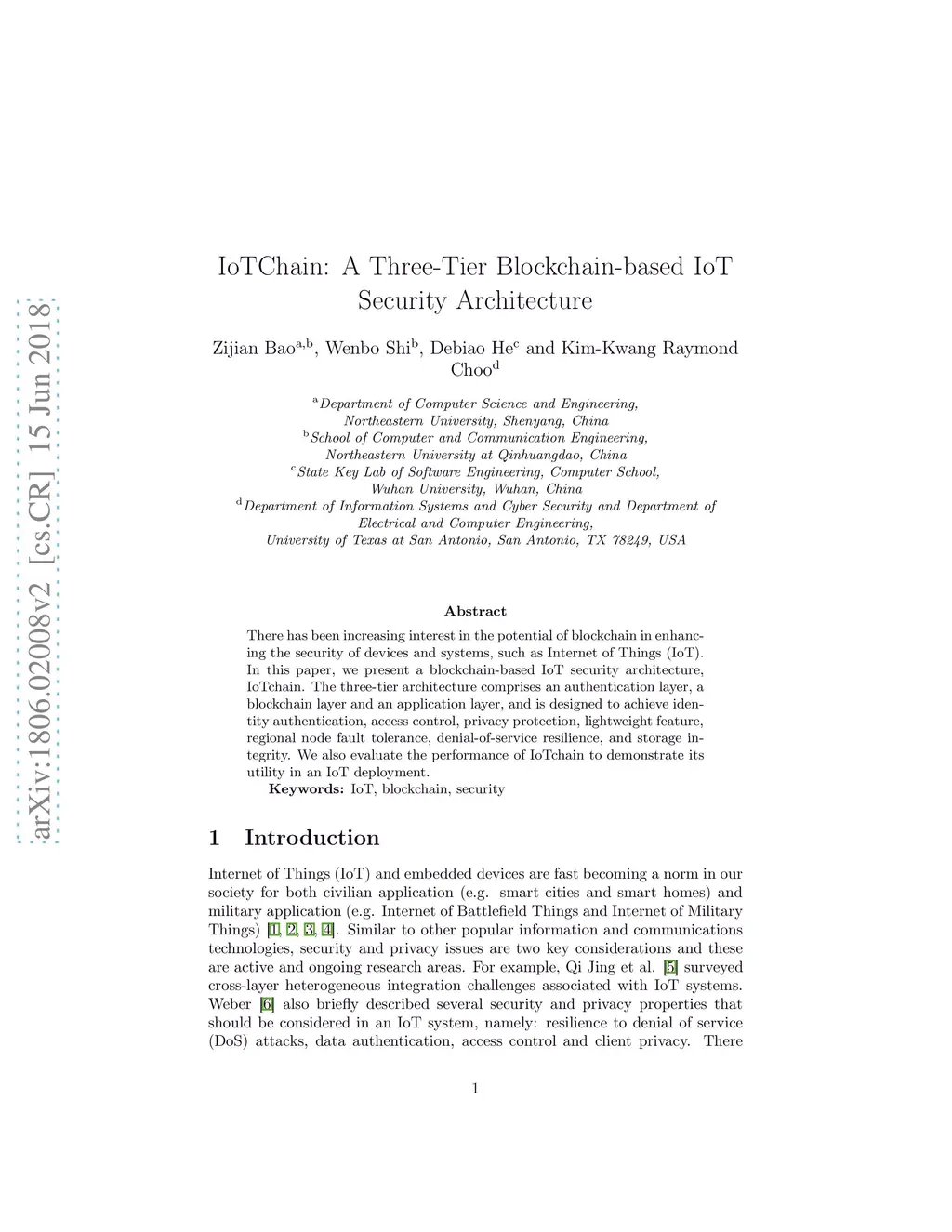 IoTChain: A Three-Tier Blockchain-based IoT Security Architecture