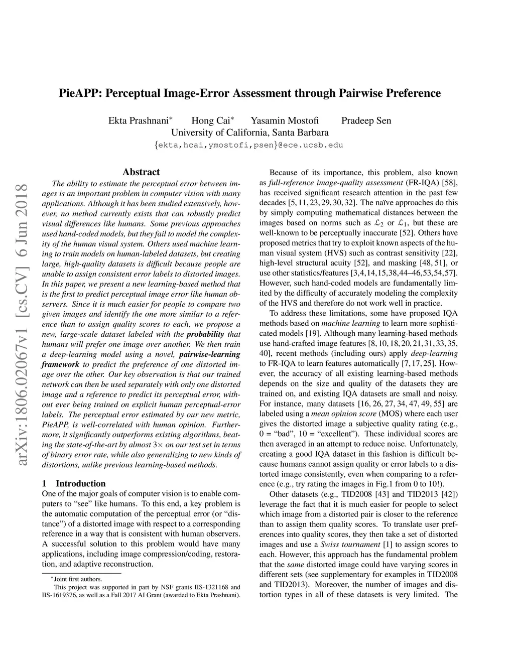PieAPP: Perceptual Image-Error Assessment through Pairwise Preference