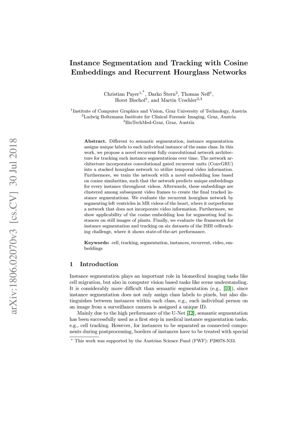 Instance Segmentation and Tracking with Cosine Embeddings and Recurrent