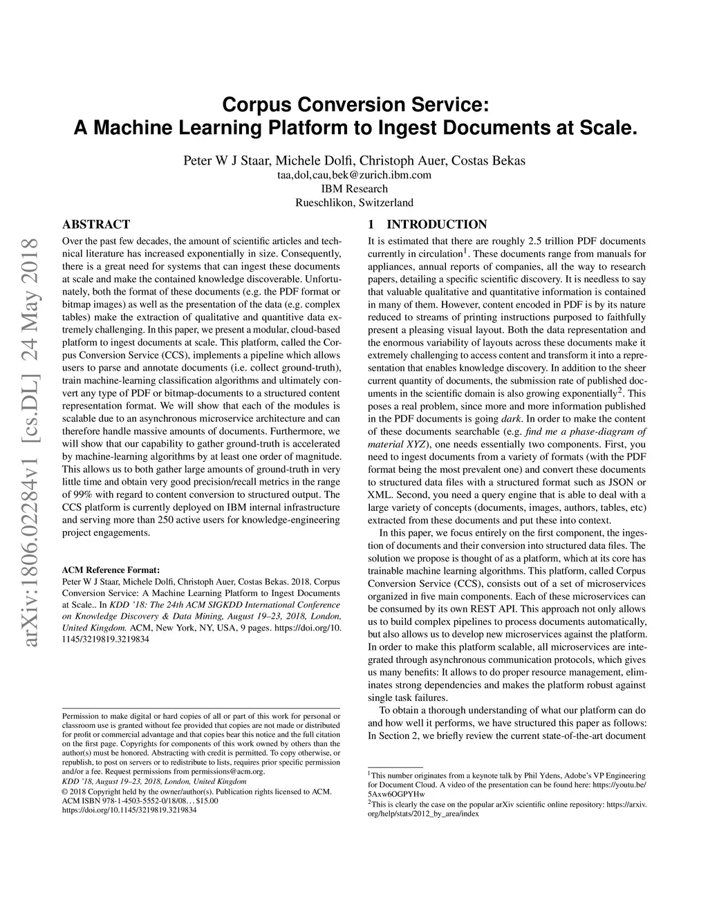 Corpus Conversion Service: A Machine Learning Platform to Ingest