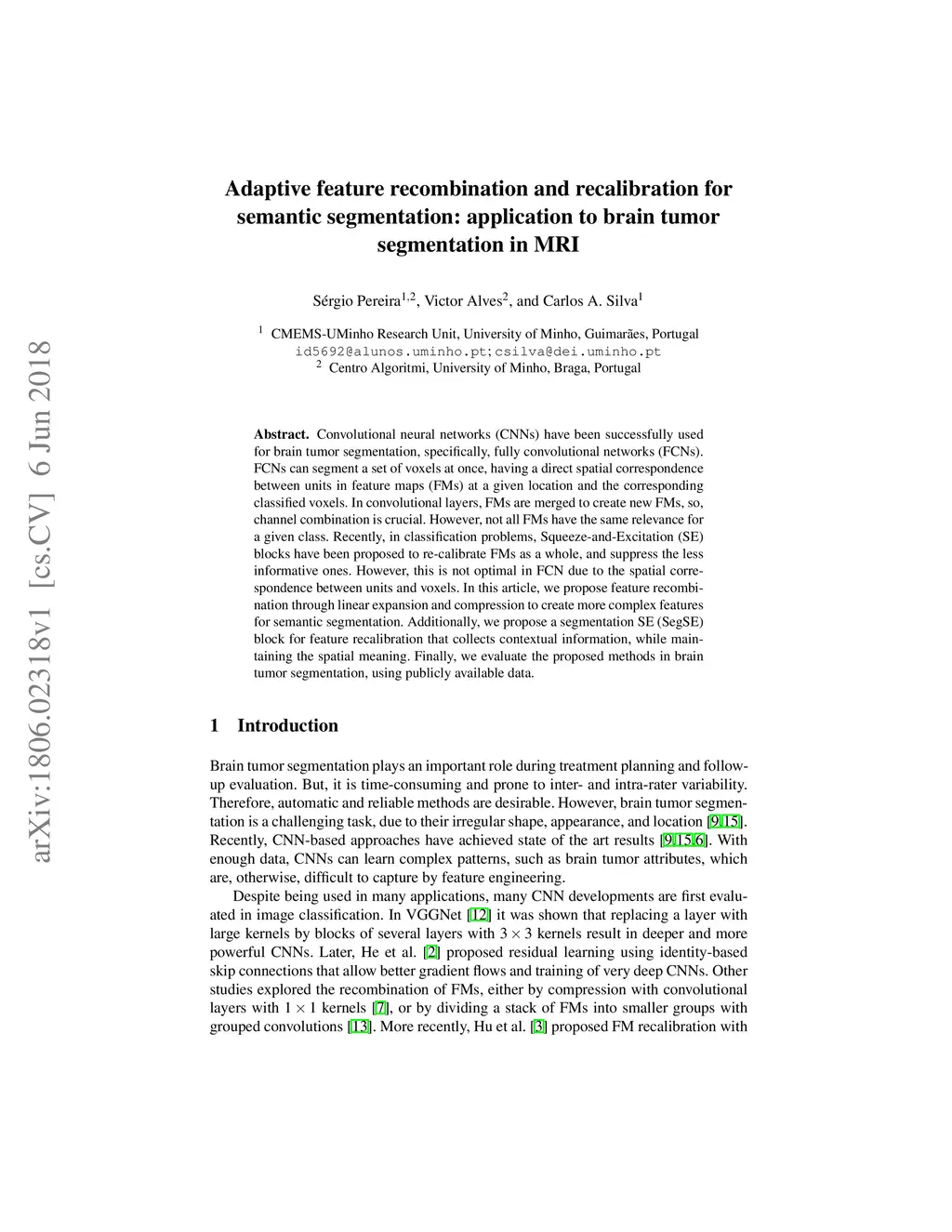 Convolutional neural networks (CNNs) have been successfully used for brain tumor segmentation, specifically, fully convolutional networks (FCNs). FCNs can segment a set of voxels at once, having a direct spatial correspondence between units in feature maps (FMs) at a given location and the corresponding classified voxels. In convolutional layers, FMs are merged to create new FMs, so, channel combination is crucial. However, not all FMs have the same relevance for a given class. Recently, in classification problems, Squeeze-and-Excitation (SE) blocks have been proposed to re-calibrate FMs as a whole, and suppress the less informative ones. However, this is not optimal in FCN due to the spatial correspondence between units and voxels. In this article, we propose feature recombination through linear expansion and compression to create more complex features for semantic segmentation. Additionally, we propose a segmentation SE (SegSE) block for feature recalibration that collects contextual information, while maintaining the spatial meaning. Finally, we evaluate the proposed methods in brain tumor segmentation, using publicly available data.