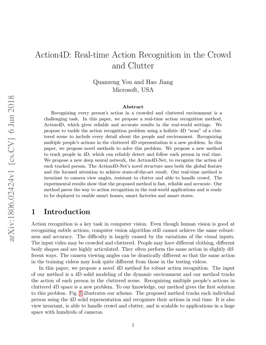 Action4D: Real-time Action Recognition in the Crowd and Clutter