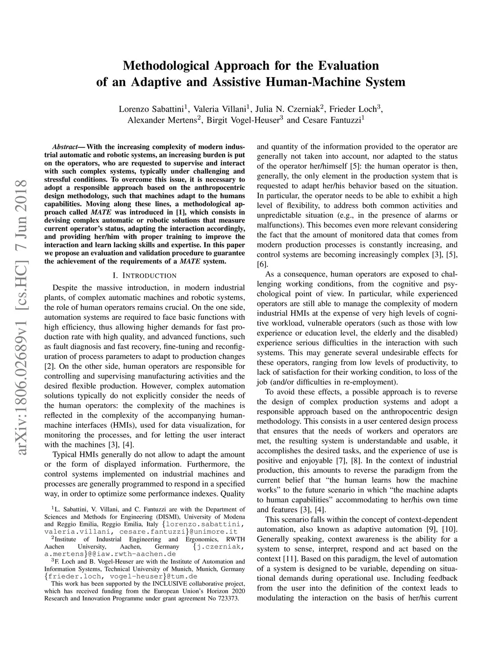 With the increasing complexity of modern industrial automatic and robotic systems, an increasing burden is put on the operators, who are requested to supervise and interact with such complex systems, typically under challenging and stressful conditions. To overcome this issue, it is necessary to adopt a responsible approach based on the anthropocentric design methodology, such that machines adapt to the humans capabilities. Moving along these lines, a methodological approach called MATE was introduced in [1], which consists in devising complex automatic or robotic solutions that measure current operator's status, adapting the interaction accordingly, and providing her/him with proper training to improve the interaction and learn lacking skills and expertise. In this paper we propose an evaluation and validation procedure to guarantee the achievement of the requirements of a MATE system.