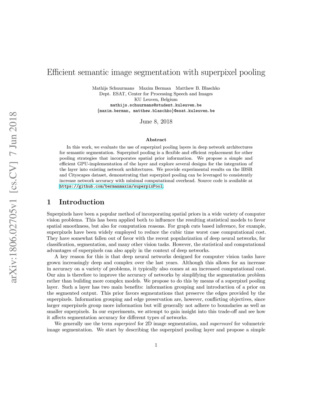 Efficient semantic image segmentation with superpixel pooling