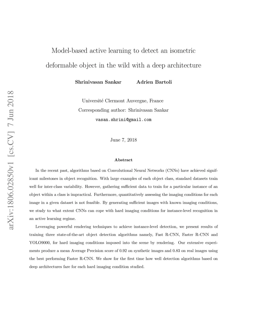 In the recent past, algorithms based on Convolutional Neural Networks (CNNs) have achieved significant milestones in object recognition. With large examples of each object class, standard datasets train well for inter-class variability. However, gathering sufficient data to train for a particular instance of an object within a class is impractical. Furthermore, quantitatively assessing the imaging conditions for each image in a given dataset is not feasible. By generating sufficient images with known imaging conditions, we study to what extent CNNs can cope with hard imaging conditions for instance-level recognition in an active learning regime. Leveraging powerful rendering techniques to achieve instance-level detection, we present results of training three state-of-the-art object detection algorithms namely, Fast R-CNN, Faster R-CNN and YOLO9000, for hard imaging conditions imposed into the scene by rendering. Our extensive experiments produce a mean Average Precision score of 0.92 on synthetic images and 0.83 on real images using the best performing Faster R-CNN. We show for the first time how well detection algorithms based on deep architectures fare for each hard imaging condition studied.