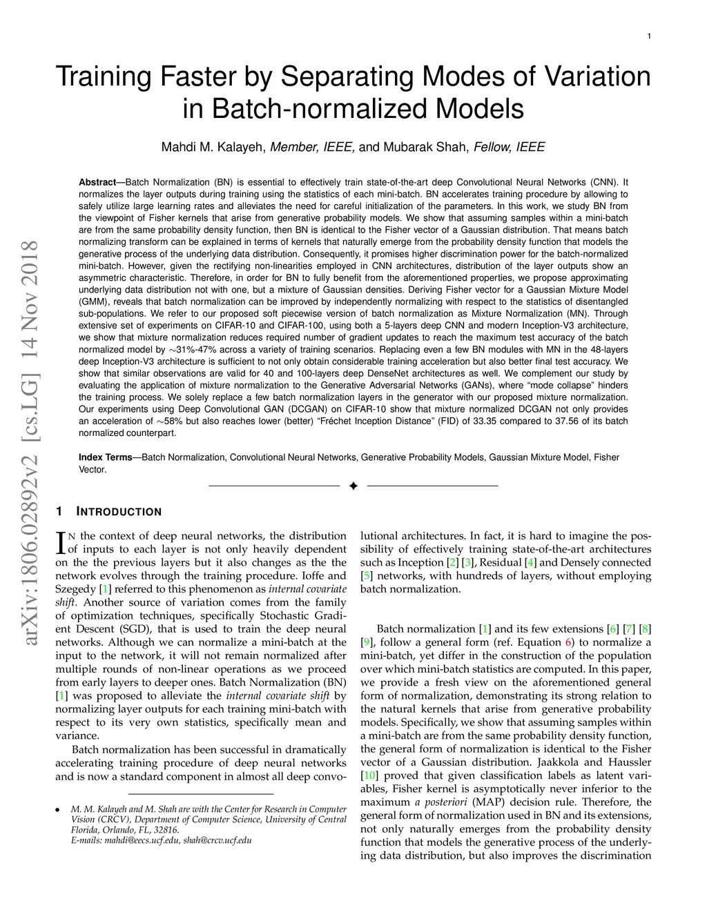 Batch Normalization (BN) is essential to effectively train state-of-the-art deep Convolutional Neural Networks (CNN). It normalizes inputs to the layers during training using the statistics of each mini-batch. In this work, we study BN from the viewpoint of Fisher kernels. We show that assuming samples within a mini-batch are from the same probability density function, then BN is identical to the Fisher vector of a Gaussian distribution. That means BN can be explained in terms of kernels that naturally emerge from the probability density function of the underlying data distribution. However, given the rectifying non-linearities employed in CNN architectures, distribution of inputs to the layers show heavy tail and asymmetric characteristics. Therefore, we propose approximating underlying data distribution not with one, but a mixture of Gaussian densities. Deriving Fisher vector for a Gaussian Mixture Model (GMM), reveals that BN can be improved by independently normalizing with respect to the statistics of disentangled sub-populations. We refer to our proposed soft piecewise version of BN as Mixture Normalization (MN). Through extensive set of experiments on CIFAR-10 and CIFAR-100, we show that MN not only effectively accelerates training image classification and Generative Adversarial networks, but also reaches higher quality models.