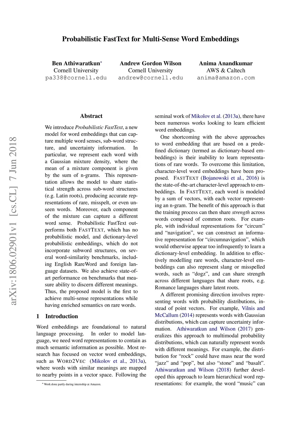 Probabilistic FastText for Multi-Sense Word Embeddings